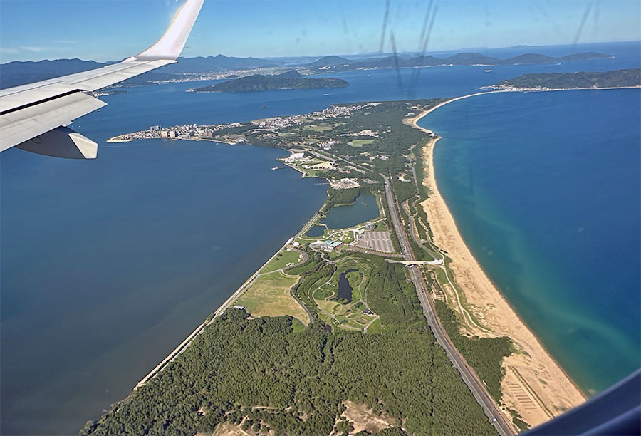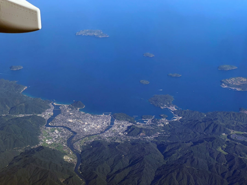 ウトウトとして気が付くと、2つの川に挟まれたデルタ地帯が特徴的な萩市が見えた。