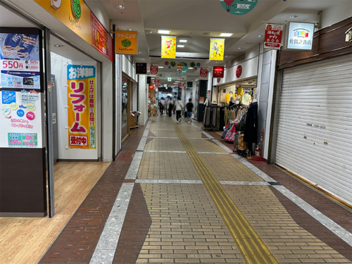 佐賀駅の改札を出てそのまままっすぐ行き、お店が並ぶ商店街を進む。