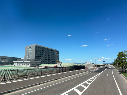 佐賀空港は有明海の奥の干拓地にあり、空港周辺はただただ平地でほとんど建物がなく、ポツンとホテルが建ってたり。
