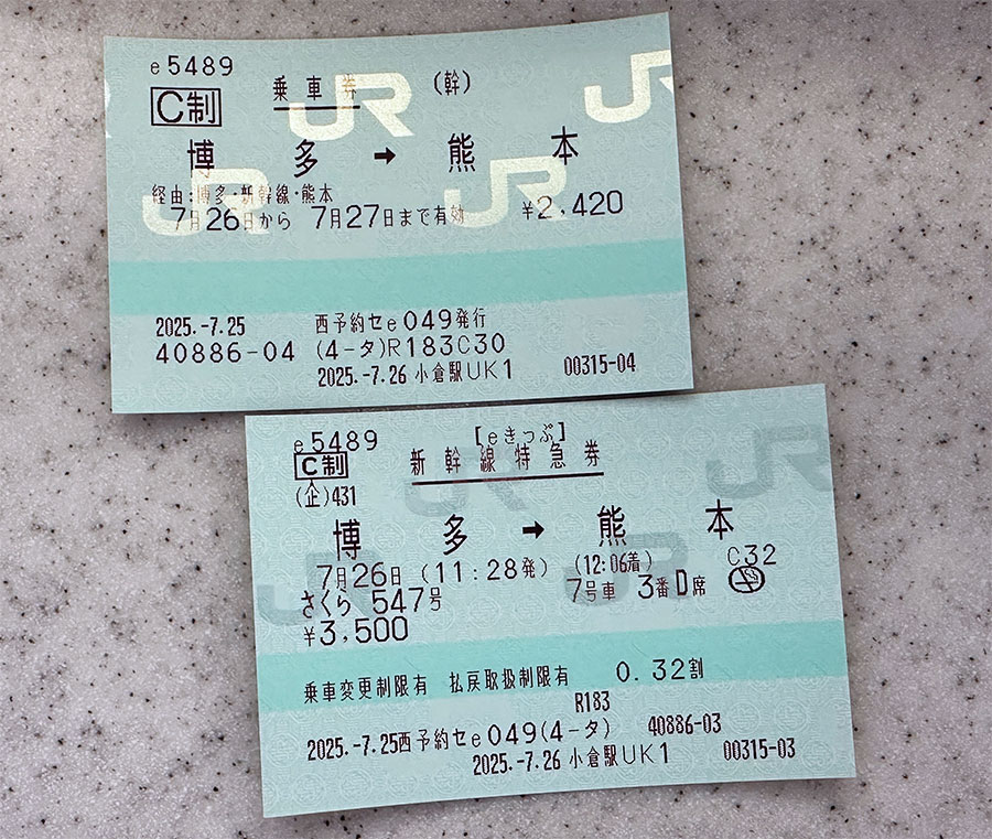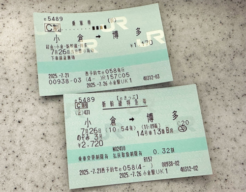 また、嫁さんが当日、新大阪からのぞみ3号で博多へ来る途中、私が小倉で合流することにしていたので博多までの切符を用意していた次第。