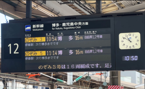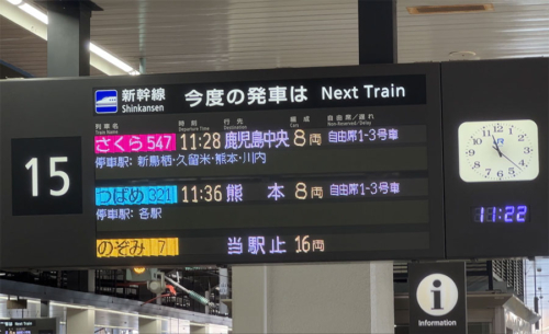 小倉駅の案内板には、700系新幹線のアイコンが。