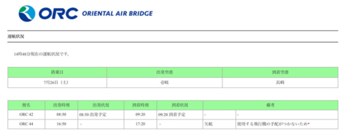 実は、元々の予定では博多からジェット船で壱岐へ渡り、夕方、壱岐からオリエンタルエアブリッジ(ORC)で長崎へ行くつもりでしたが、前日にORCから電話があり、予約していた便が機材繰りができないので欠航すると言われてしまう。