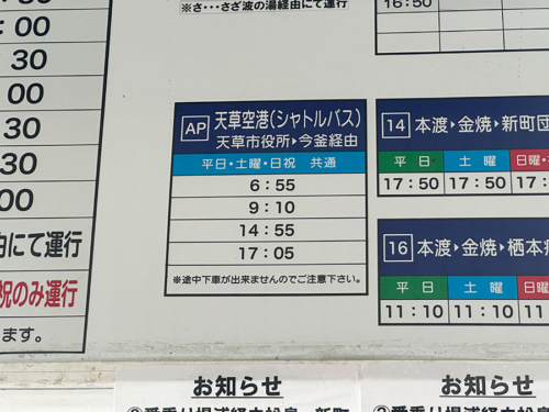 と思ったら、「本渡バスセンターで天草空港行きの乗車券を買っても途中のバス停で下車したら前途無効になりますよ!」という意味だったのかも。