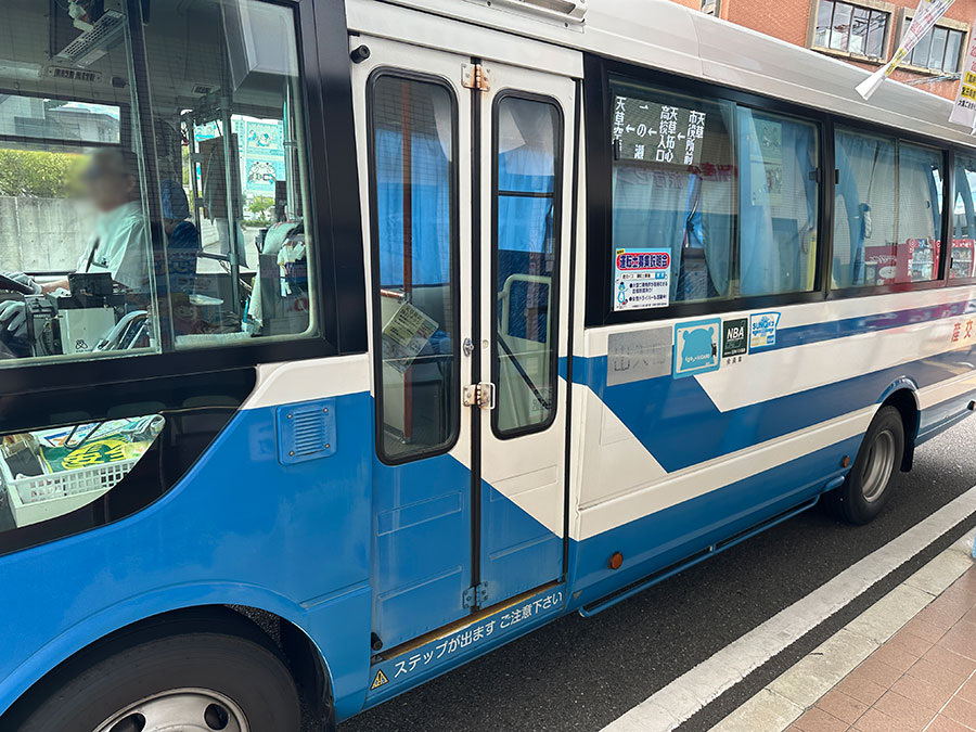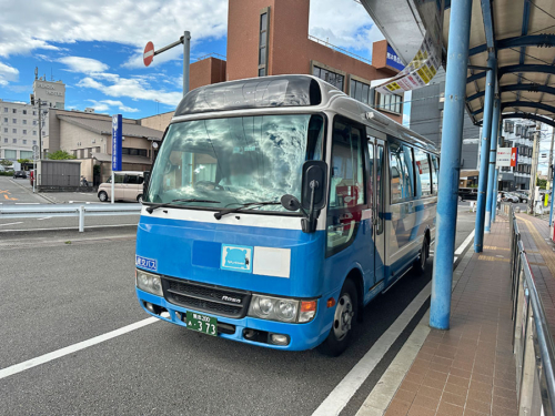 天草空港行きのバスは、三菱ふそうのマイクロバス、ローザ。