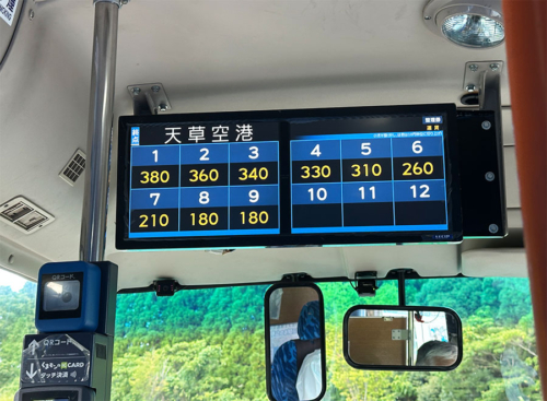 途中下車はできませんって書いてあったのに、車内の料金表には整理券番号とともに料金が表示されてるやん!