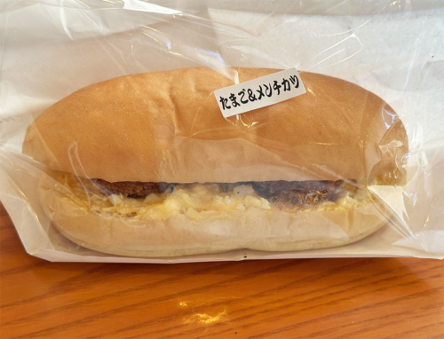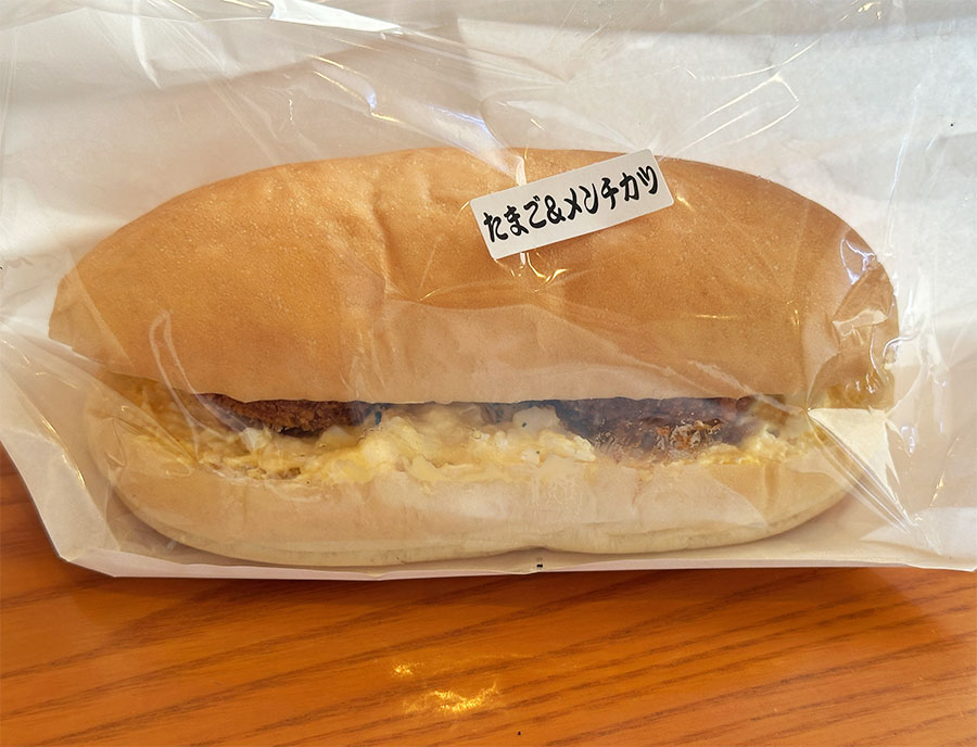 名前の通り、コッペパンにたまごサラダとメンチカツが挟まってます。