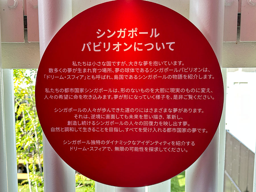 東ゲートから入ったけど、大屋根リングのほぼ反対側にあるシンガポール館へ。
