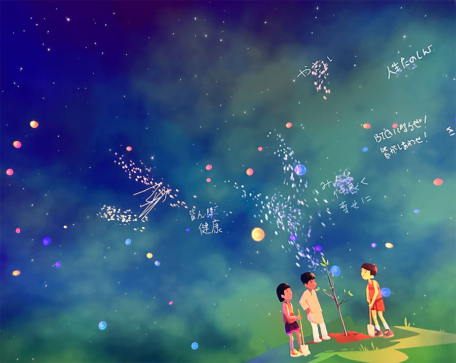 願い事を書いて手で飛ばすと、球になってふわ~っと飛んでいき・・・