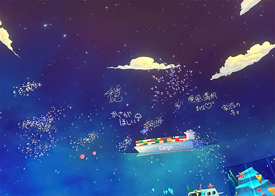 ただ、スクリーンのどこに手書きの願い事が映し出されるかわからないので、360度よーく見ていなければなりません。