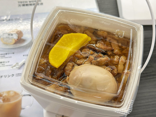 具が入った容器の下にごはんがあり、具をかけて食べる。
