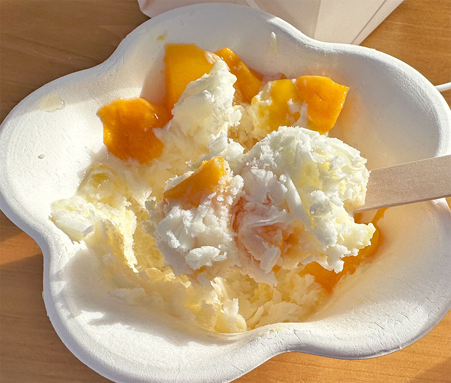 雪花冰のようなフワフワの氷ですが、氷自体はマンゴー味ではなくミルク氷。