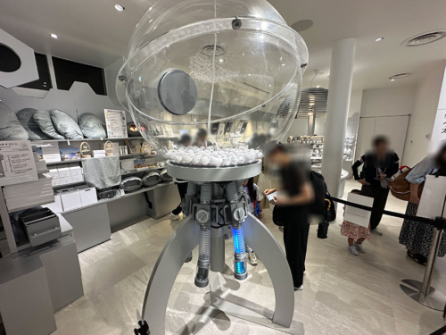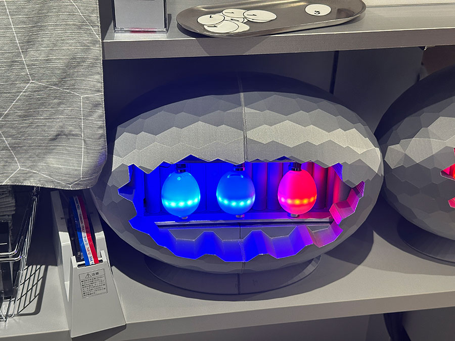 出てきた卵を専用の機械に入れると、卵が光って景品がわかる仕組み。