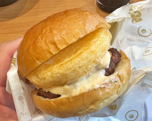 ちょっと小ぶりですが、ふわっとしたバンズに目玉焼き風オムレツ、ベーコン、ハンバーグにタルタルソースがアクセント。
