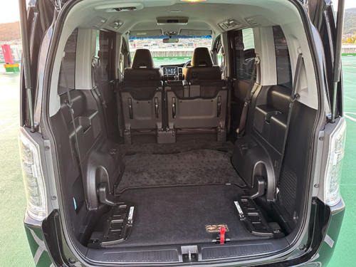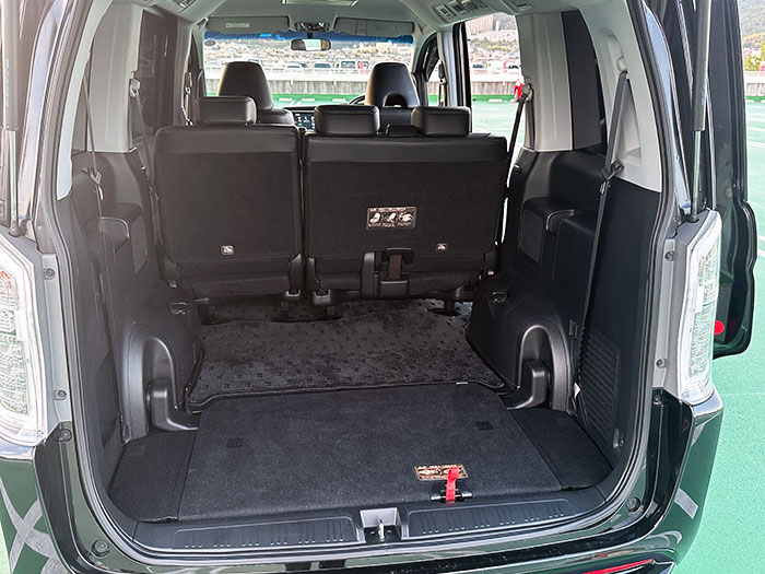 ステップワゴンは初代から3列目が床下に収納されるのが伝統ですが、3列目を出すと凹んだ荷室になるので、フル乗車時は8人乗りのアルファードより荷物は載るかも。