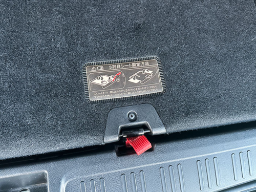収納した3列目シートはバネで軽く浮くので、フックを引っかけてフラットに固定。