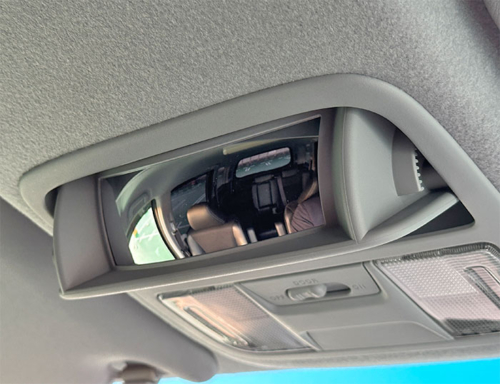 天井のサングラスホルダーにあるミラーは、後部座席まで見渡せていい。