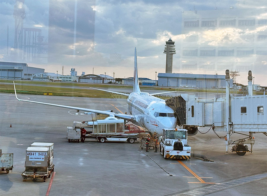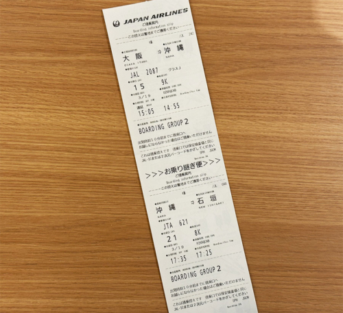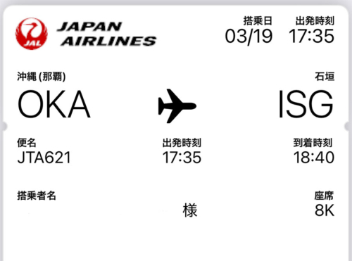まずは大阪空港からJAL2087便で那覇へ飛び、那覇でJTA621便に乗り継いで石垣へ向かいます。