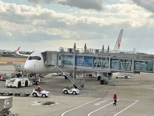大阪から乗ってきたJA14XJは、再び大阪へ向けて出発準備中。