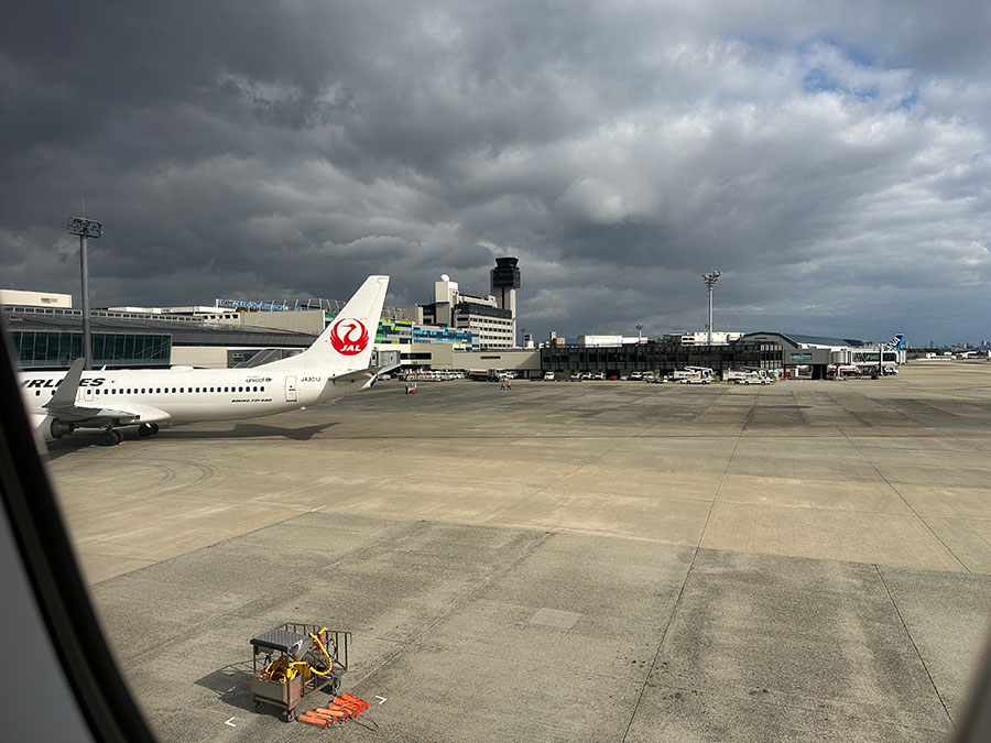 大阪からの飛行機が遅れたので、乗り継ぎ客を待つためにJTA621便も遅れが確定。