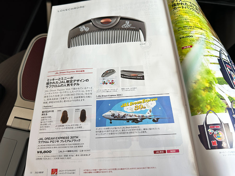 機内販売の冊子を見ると、髪の広がりを防ぐというヘアコームがあったので買ってみることに。