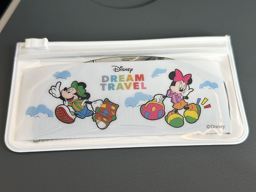 ミッキーとミニーが描かれた専用ケース入り。