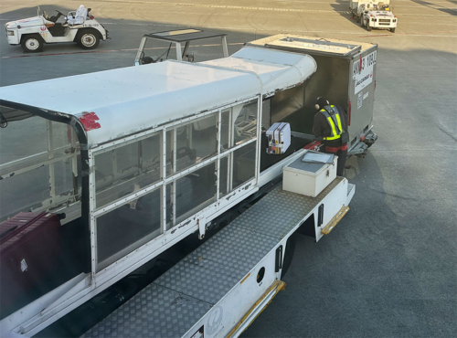 乗り継ぐのは人間だけでなく荷物も搭載しなくてはなりませんが、着席してふと窓の外を見ると、私が預けたキャリーケースが載せられてるところだった。