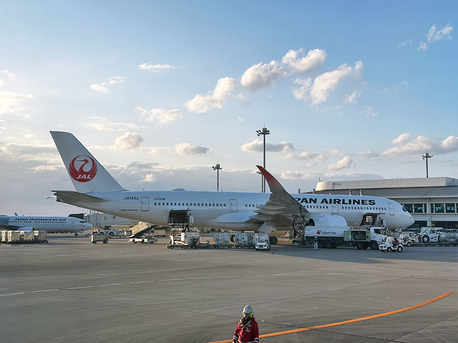 沖縄便はフライト時間が長いのでクラスJに。
