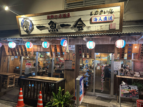 今回、石垣島で泊まったホテルの玄関を出て、目の前にあった居酒屋『一魚一会』。