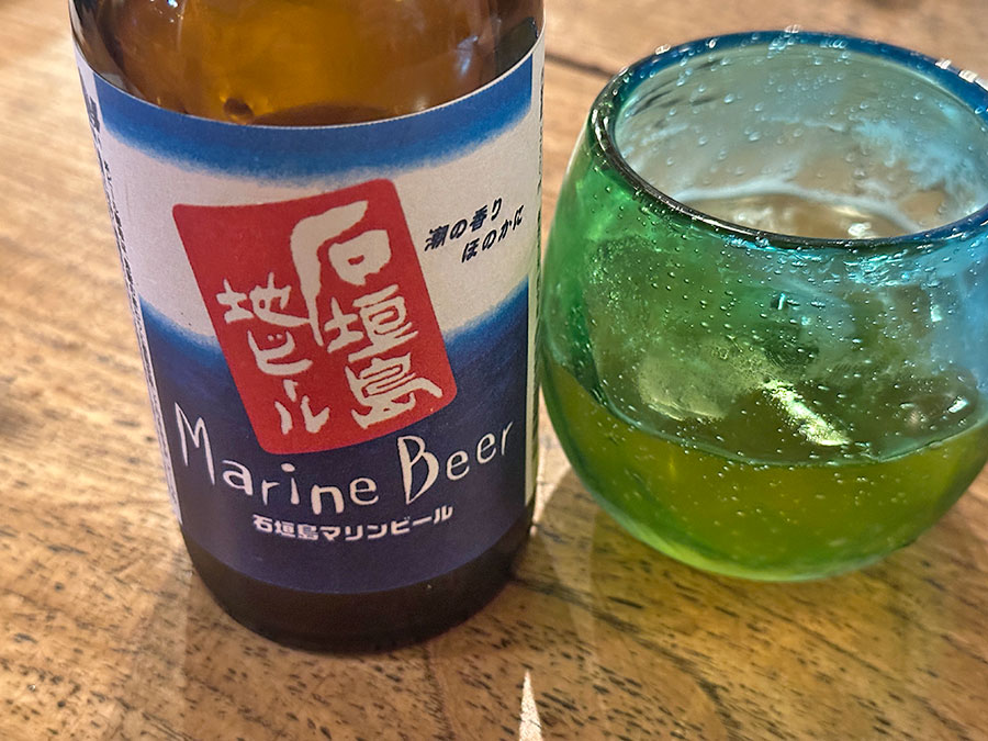とりあえずのビールは石垣島の地ビール、マリンビール。税込900円也。