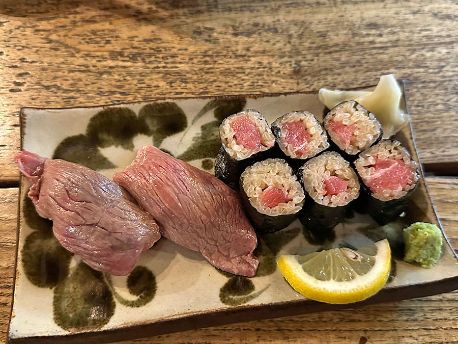 牛握り2貫(1,080円也)と 中とろ巻き(680円也)。