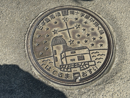 波照間島は日本で数少ない南十字星が見える場所にちなみ、マンホールも蓋にも南十字星が。