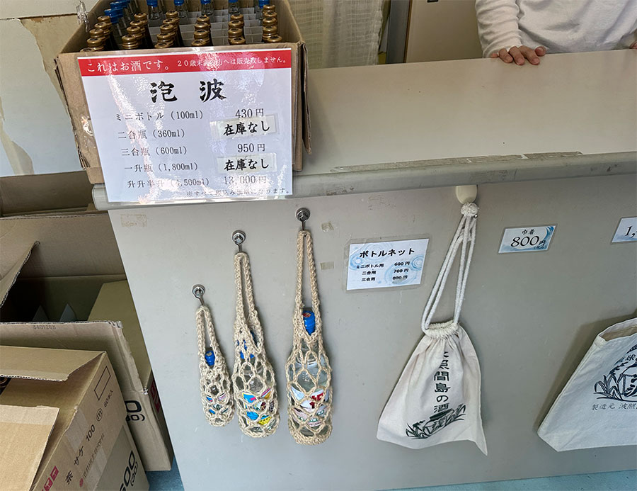 ここで「泡波」を買うツアー客もいましたが、私は泡盛は飲まないのでカウンターにぶら下がっているボトルネットを買うことに。