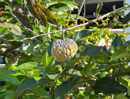 庭先には「釈迦頭(シャカトウ)」という熱帯フルーツも。
