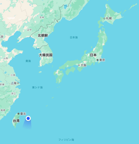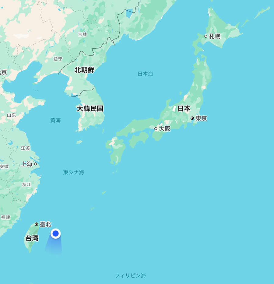波照間島から約200kmほど西に台湾があり、水平線の向こうには肉眼で台湾が見えます。