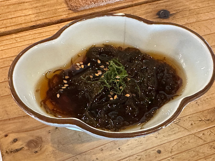 お昼のメニューはコースになっていて、まずは島のもずく。