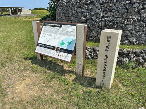 私は波照間港まで行くことにしてバスに乗りましたが、港までの道中、ツアーのはじめの方に車内から見たコート盛に再び止まり、バスを降りてコート盛の見物をさせてもらえることに。