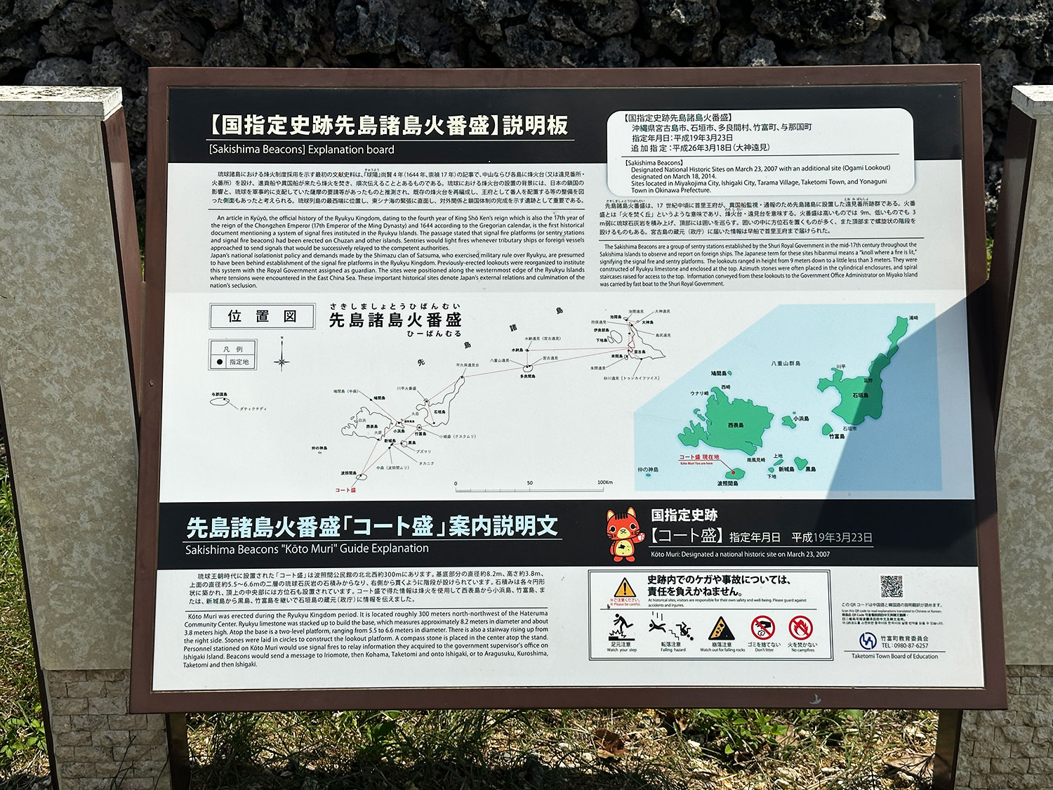 コート盛に上ることができますが、民家の石垣のような石を野面積みされてるだけなので足元が不安定で転びそうだし少々こわい。