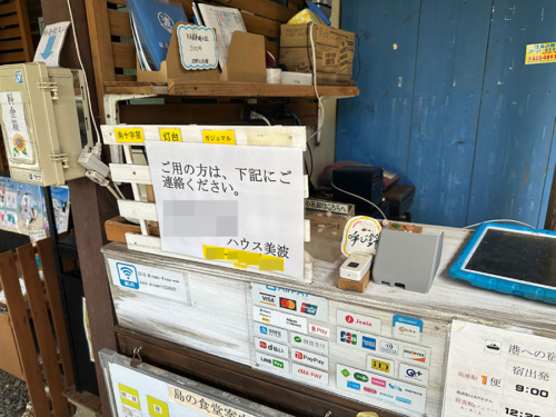 フェリーターミナルの売店でレンタサイクルを申し込んだので、てっきり港で自転車を貸してくれるのかと思いきや、港から送迎用のエスティマに乗せられ島中央部の集落にある『ハウス美波』へ。