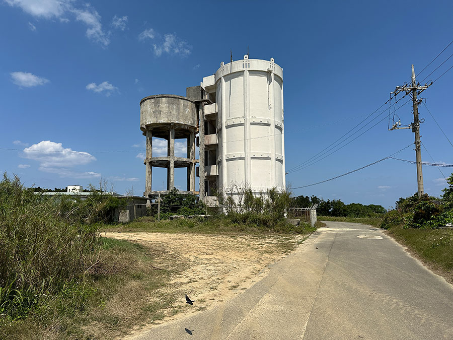 まずは島中央部から北の方向へ走り出してみると、コンクリート製の丸い塔が出てきた場所は・・・