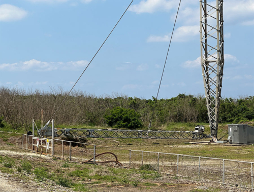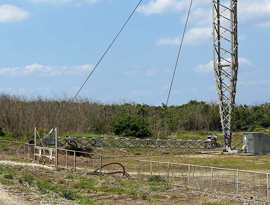 近くでよく見ると、支柱は4本のワイヤーで支えられていて・・・