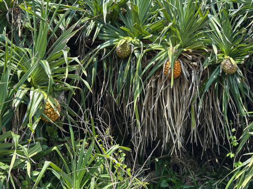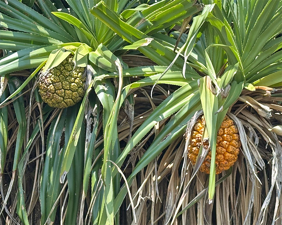 これはパイナップルではなくアダンの実で、繊維質が硬いため食用には向いていないらしい。