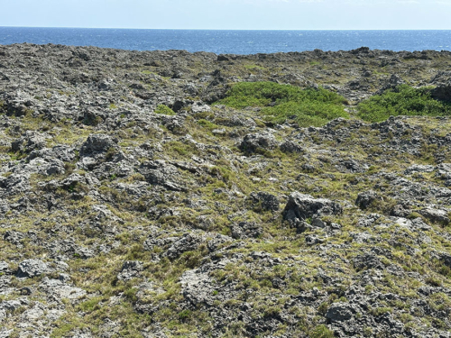 まるで溶岩が浸食したところみたいに岩が尖っているのでつまずきやすく、転んだら流血は避けられそうにない。