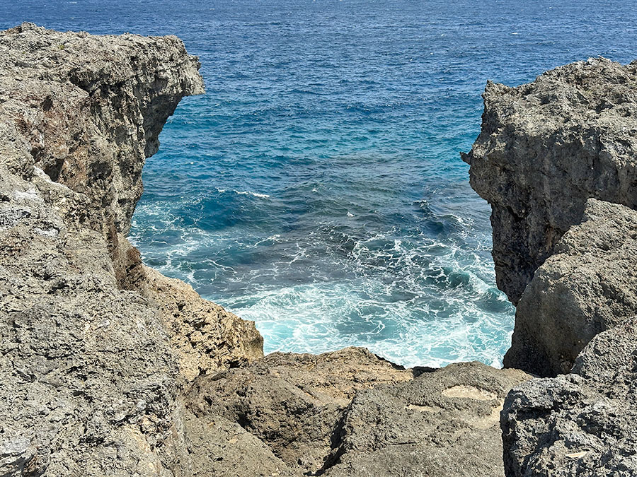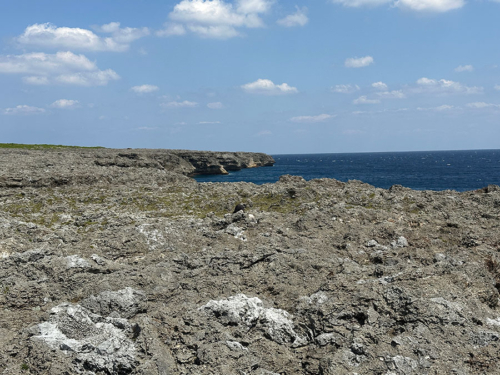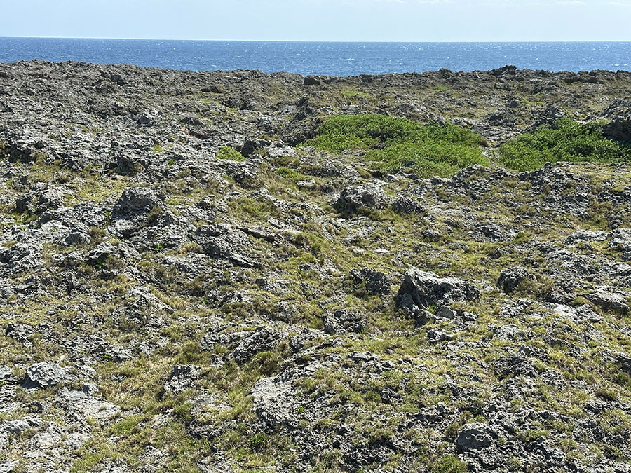 波照間島は海底のサンゴ礁が隆起した琉球石灰岩でできた島ですが、波や風雨の浸食により尖った岩が多くとても歩きにくい。