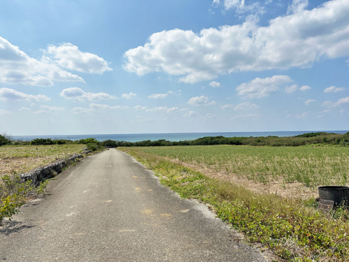 風車のある島の北東部は島一周道路から海も見え、エモい風景が広がる。