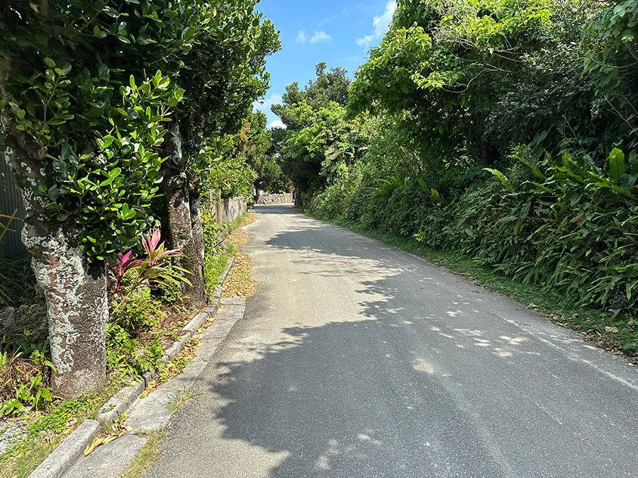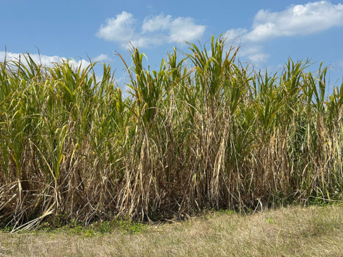 島の西から中央部の集落へ戻る途中、背の高いサトウキビが壁のように。