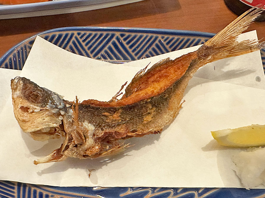 これも沖縄特有の魚ですが、身は少ないものの油で揚げられてるので皮はパリパリ、骨はポリポリ。