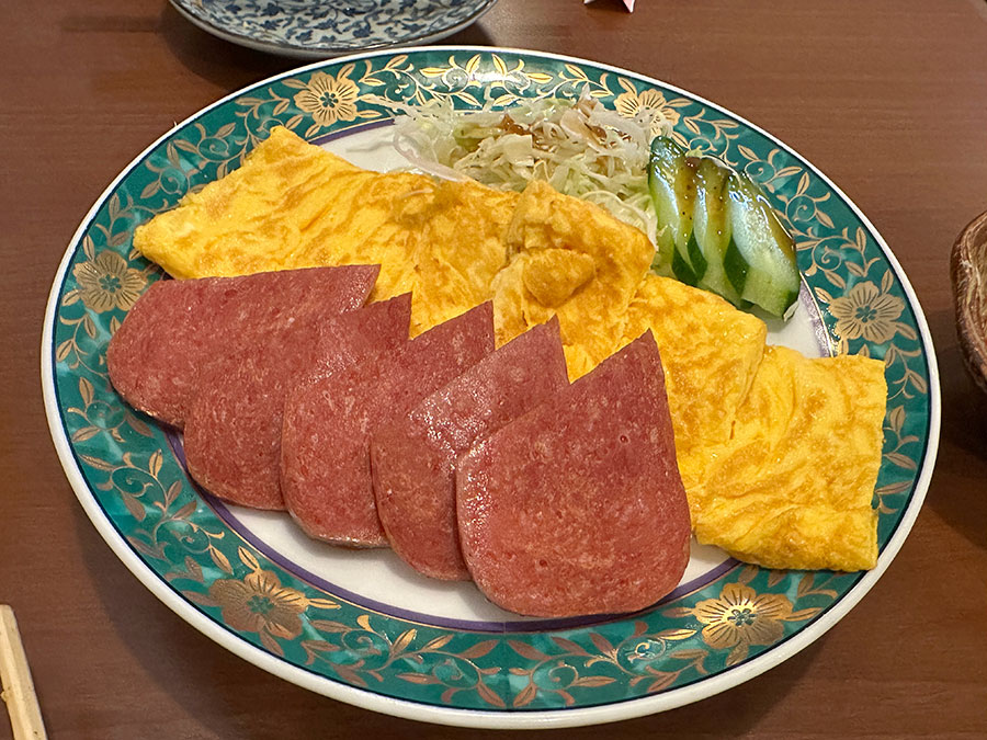 いわゆる「ポーたま」ですが、何の変哲もない玉子焼きや焼きポークランチョンミートも沖縄で食べるとうまい。