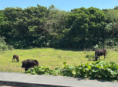 坂の途中で牛が放牧されてたり。