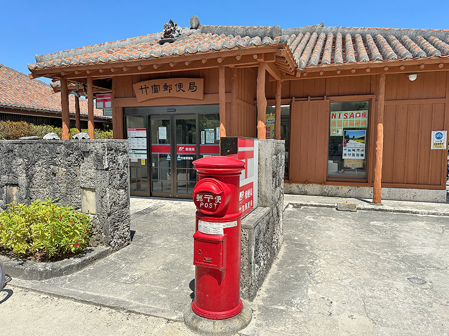 郵便局の屋根にもシーサーが乗ってますが、波照間島のシーサーとは違った顔つき。