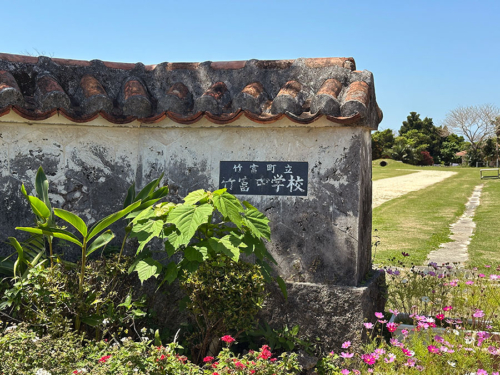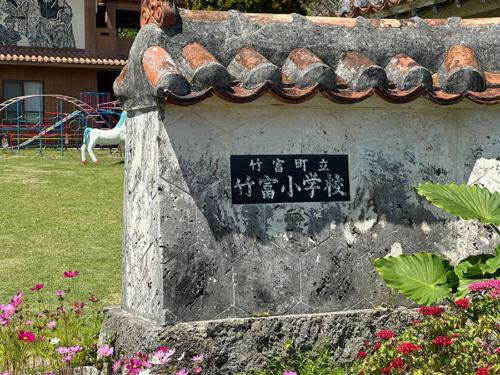 向かって右側には竹富小学校の校名板と・・・